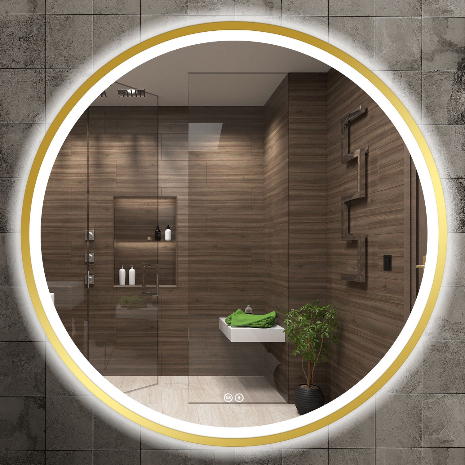 Veidrodžio elegantiškas, aukso spalvos aliuminio rėmas suteiks jūsų interjerui unikalumo ir stiliaus. Subtilus LED apšvietimas, sklindantis pro smėliuotą kraštą, sukuria efektingą ir malonią atmosferą. Integruotas šildymo kilimėlis efektyviai apsaugo veidrodį nuo rasojimo, užtikrindamas visada puikų matomumą.