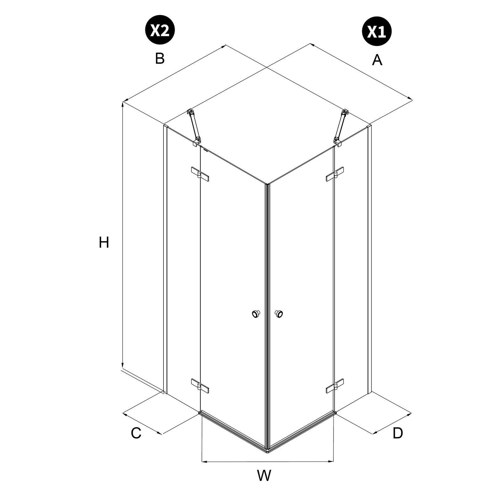 Dušo kabina Kalibra, dvejos durys, juoda - Image 2