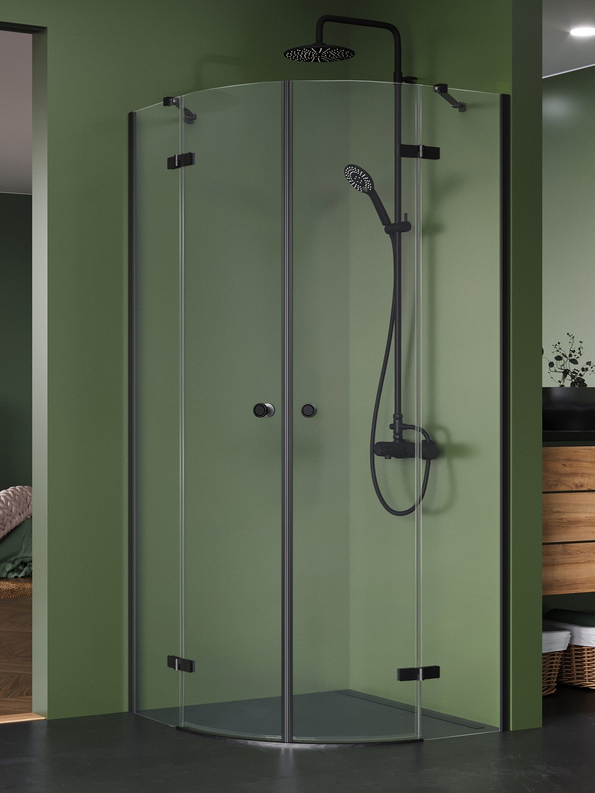 „Kalibra“ modelis – tai moderni dušo kabinų kolekcija, išsiskirianti elegantiškomis juodos spalvos apdailos detalėmis.