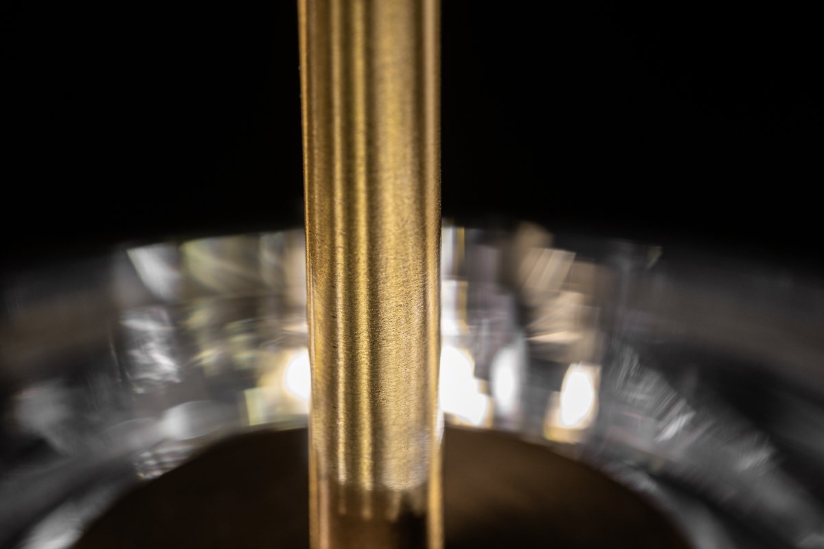 Elegantiškas pakabinamas šviestuvas su skaidriu stiklu naudoja savo nuostabią formą ir auksinius akcentus, kad jūsų namuose būtų pristatytas šimtmečio vidurio dizainas su šiuolaikišku posūkiu.